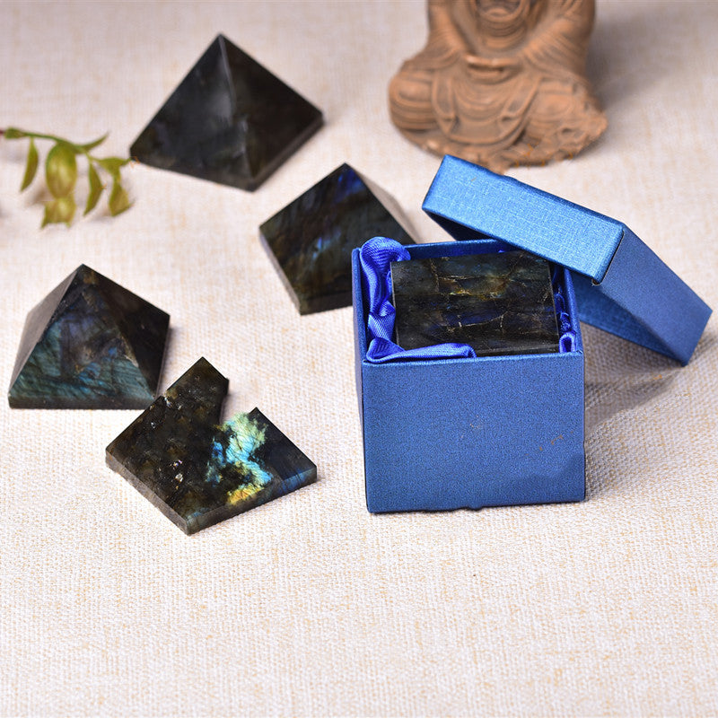 Natürliche Mondstein Pyramide – Polierter Labradorit-Kristall, Energie- & Meditationsstein, Elegante Schreibtisch- & Wohnraum Deko