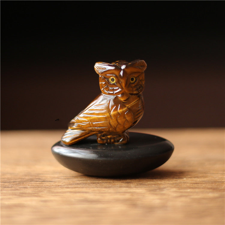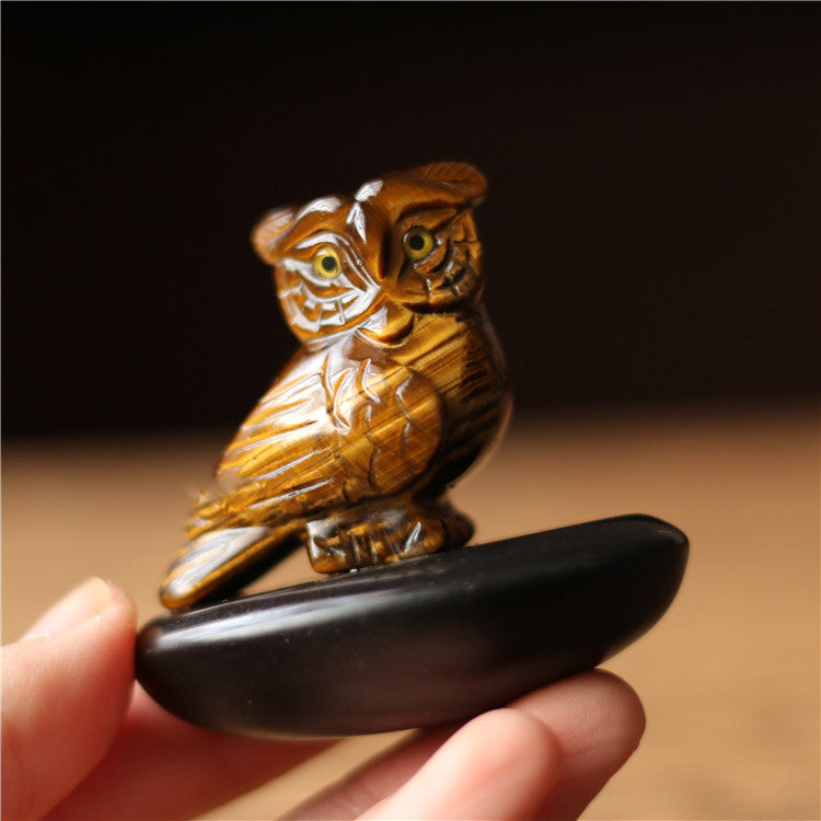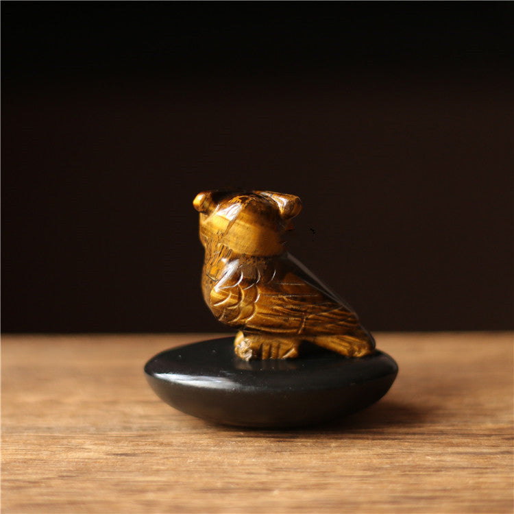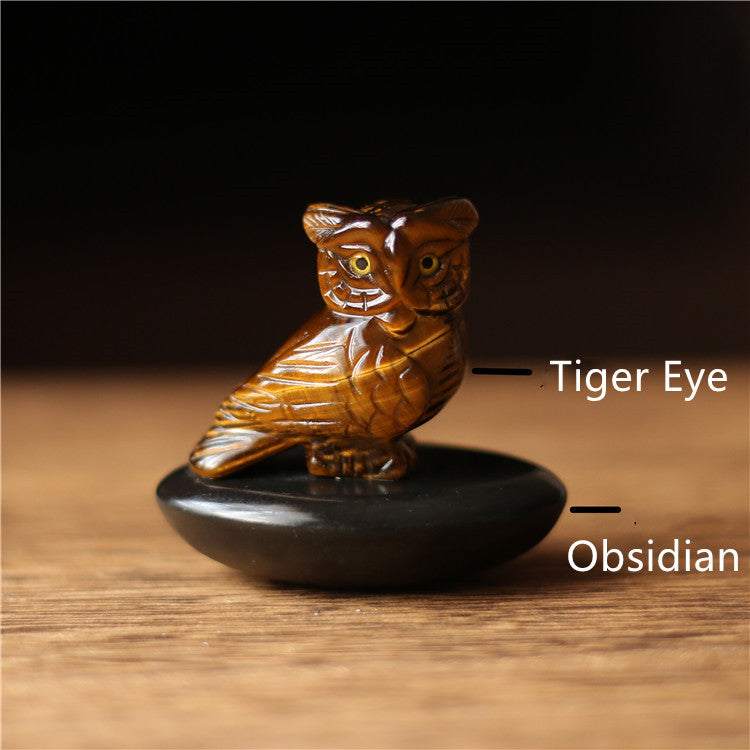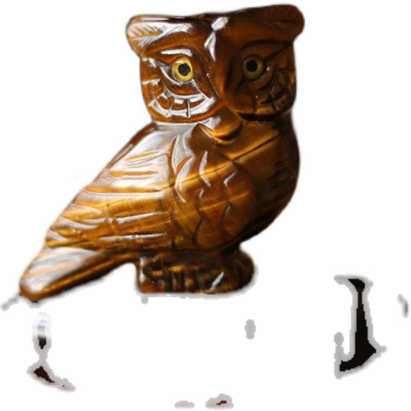 Natural Tiger Eye Obsidian Carved Owl Ornament