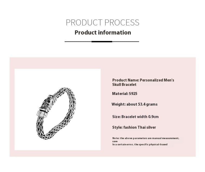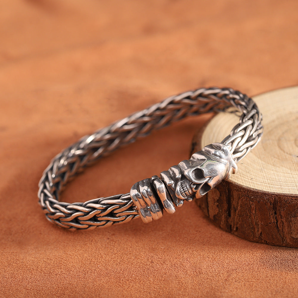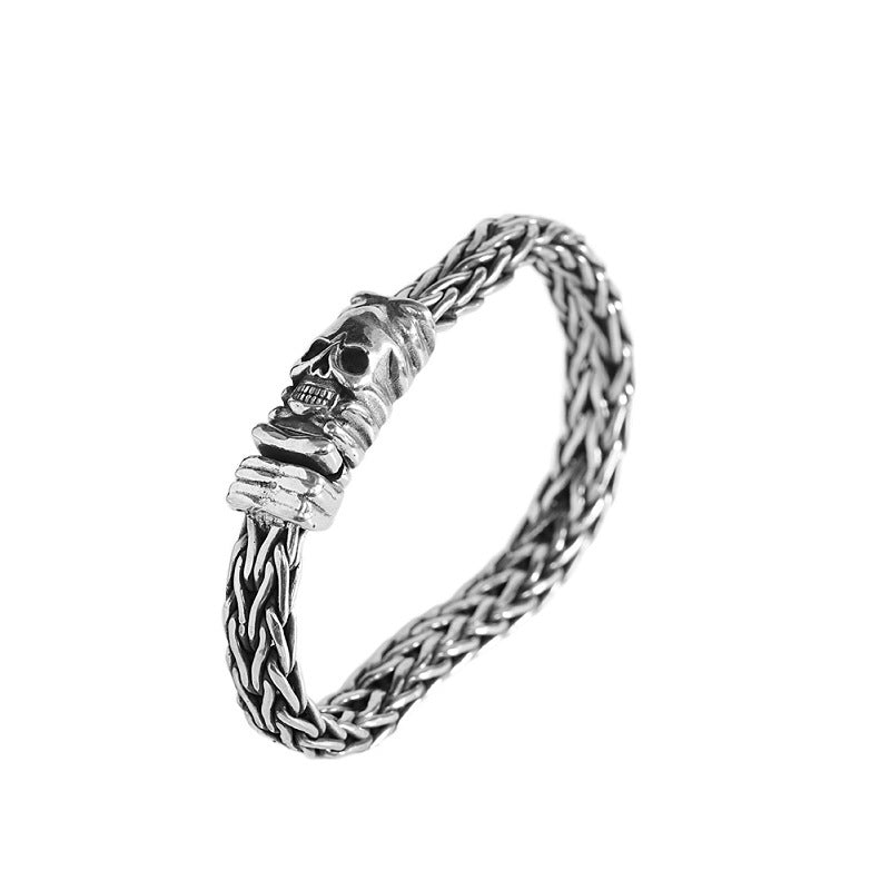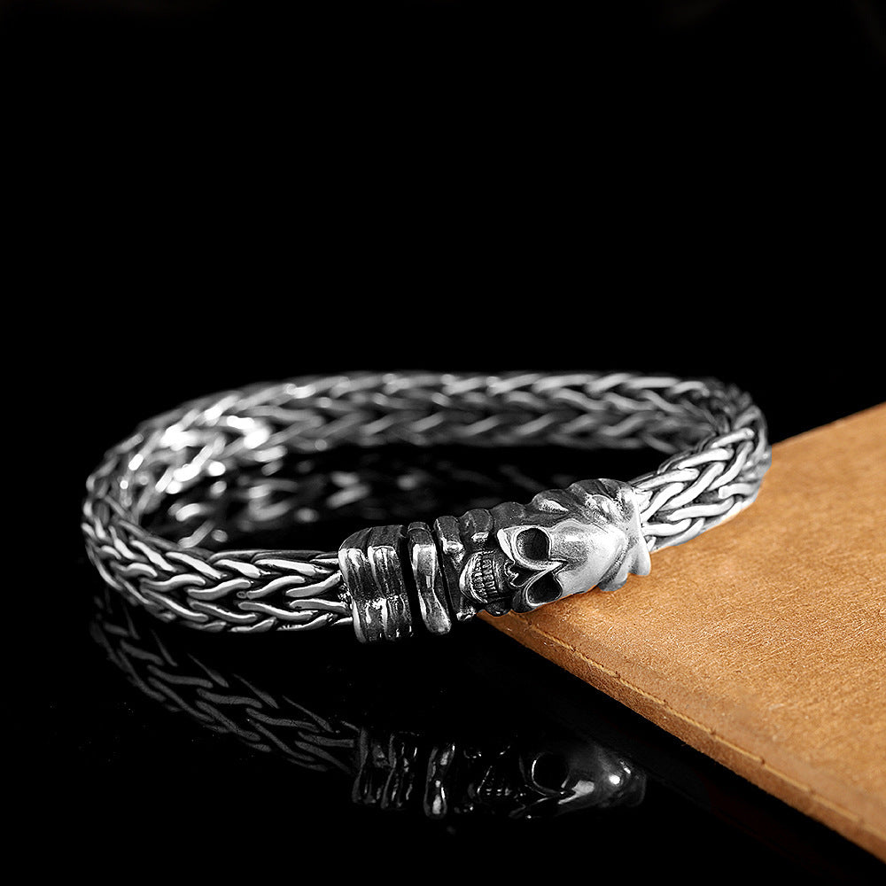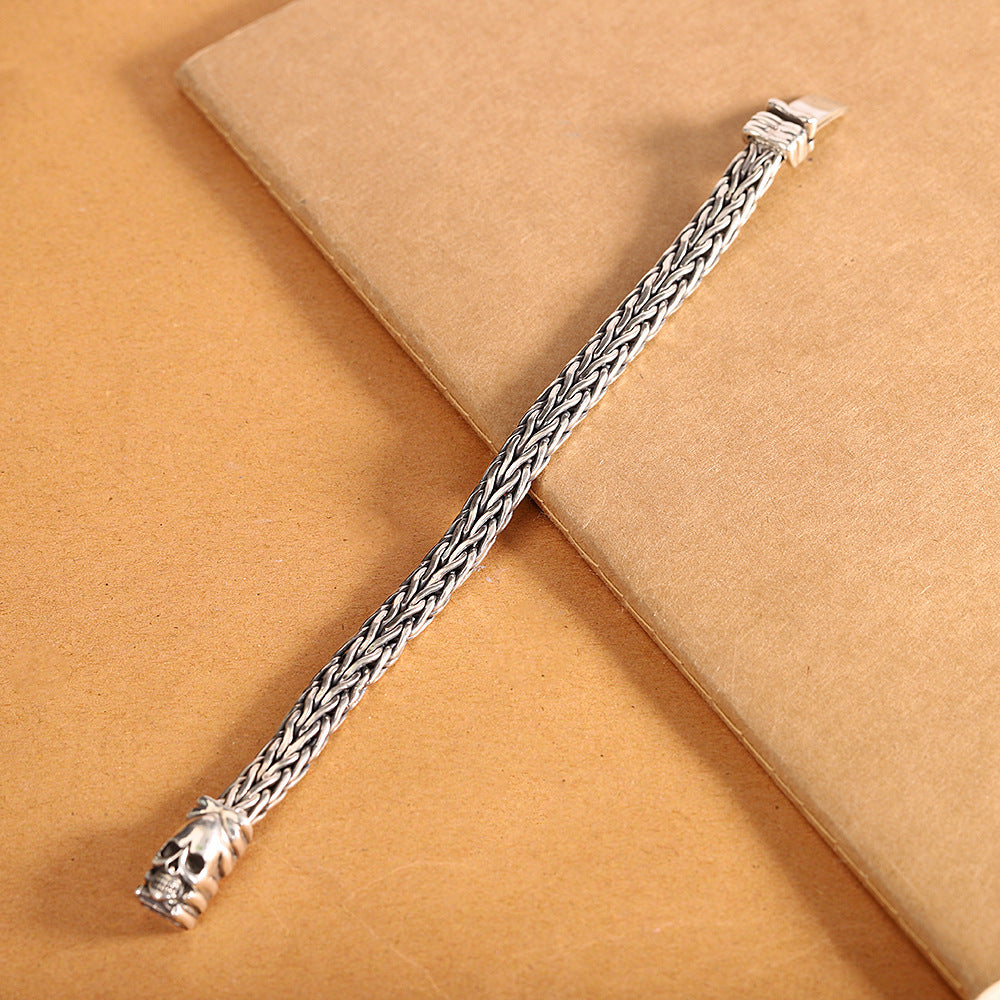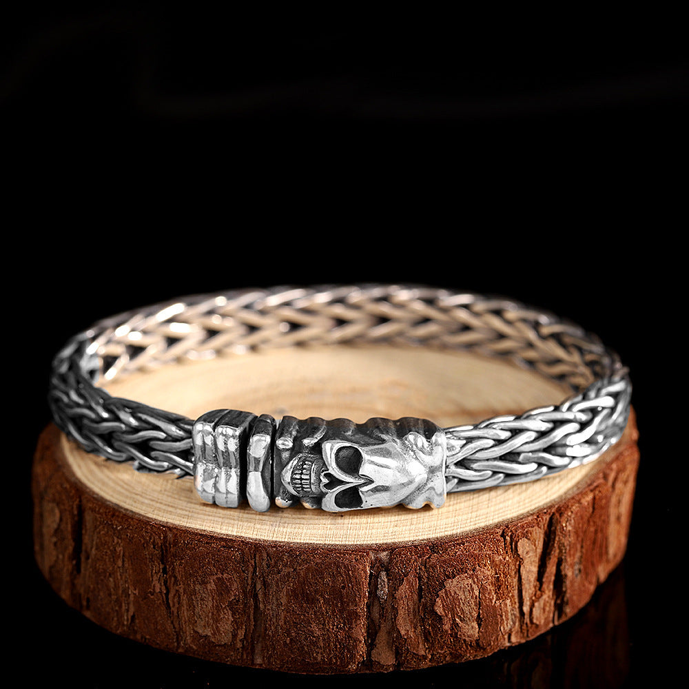 Thai Silver Antique S925 Silver Accessories Personality Seiko Men's Weaving Skull Bracelet